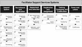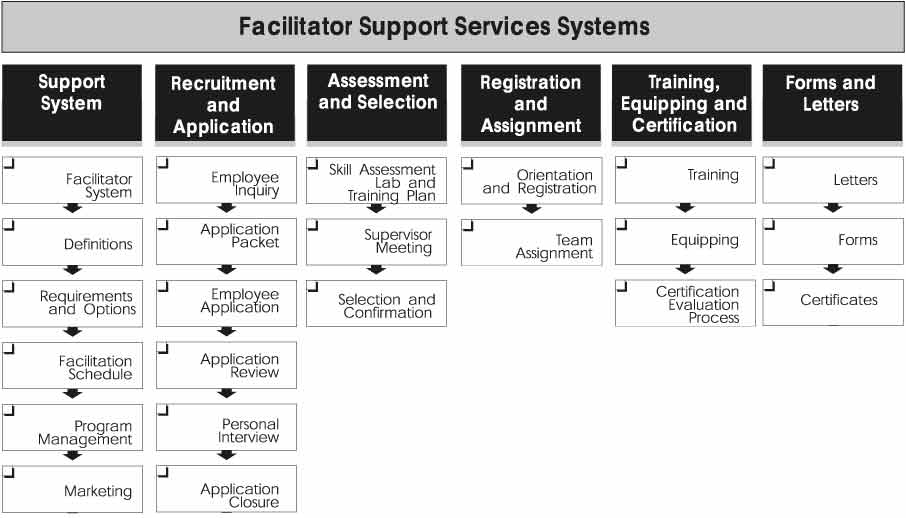 Facilitation & Group ManagementEquipping Employees to Manage Group ProcessResults of group and team work rely heavily upon the skills of the facilitator. Without his or her guidance, group work can move in the wrong direction, undermining the team product. With a well-trained, skilled facilitator, the quality of the team results will be magnified. Facilitator SystemFacilitator System is a custom designed training resource to develop facilitation skills among line employees. It includes a full spectrum of processes, guidelines and program outlines. Our Competency Matrix is used to identify facilitation skills at three levels: Level 1 for intra-team activities, Level 2 for inter-team facilitation, Level 3 for strategic and organizational situations. Facilitator Lab AssessmentThis assessment initiates a process is for selection of facilitation candidates. Further, it exposes line employees to facilitation activities and requirements. It enables both the employee and the organization to determine readiness for entering the facilitation program and at what competency level. Facilitator Orientation Training ProgramOur three-day Role Clarification Program equips selected line employees to understand the purpose and application of facilitation within their organization. Training experiences include actual team situations applied to Teaming By Design: Real Teams for Real People and the WorkStyle Patterns® Inventories . Specific instructions for the facilitator on how to use each chapter of the book and the inventories are provided along with practices exercises. Facilitator Skill Development ProgramOur five-day hands-on training program develops Level I competency for effective team facilitation. This practicum is loaded with a variety of team simulations in which each participant learns a group process, shares the learning and facilitates a group. It includes group feedback and a video critique. We offer a custom version designed to integrate learning modules with existing training resources within the organization. Contact us with your needs or questions: